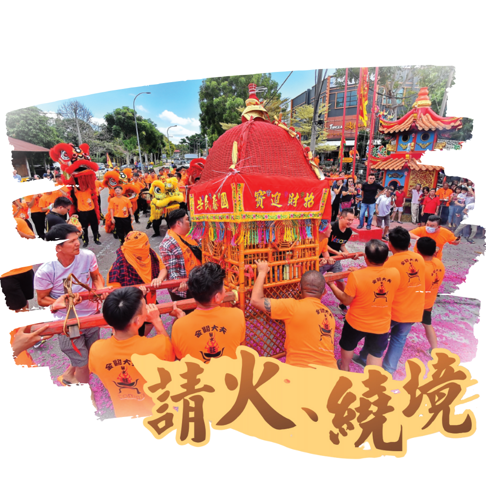 取得圣火并装入火炉后,随即在整个东甲市区进行绕境祈福。圣火相传能够消灾解厄,绕境途中前往位于十五支的东甲河畔镇符,后火炉将会供奉在老庙神桌供善信膜拜。