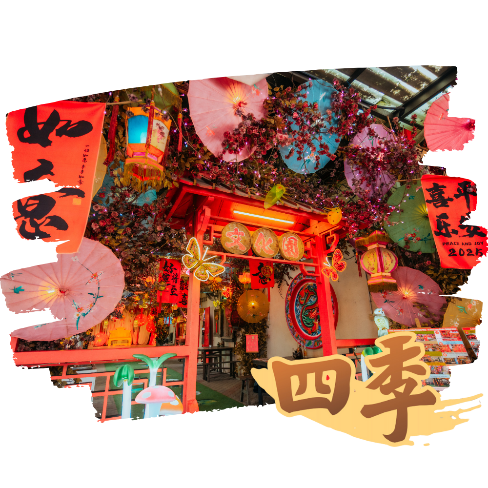 华族四大依据:春、夏、秋、冬四季庆祝的传统节日依序为春季元宵节、夏季端午节、秋季中秋节及冬季冬至节。自老庙文化园于落成以来都会在这四大节庆主办庆典,发扬四大节庆。